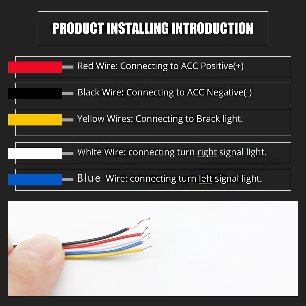 Красная линия и желтая линия соединены с положительным электродом вместе, и стоп-шрифт торможения мигает