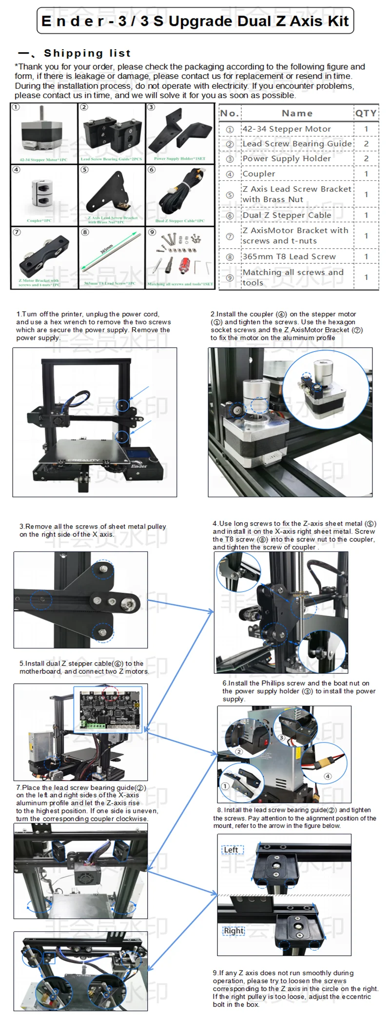 3D Ender 3 pro dual z axis Dual Z Axis свинцово-винтовой комплект для Creality CR10 Ender 3 Pro Аксессуары для 3D-принтера