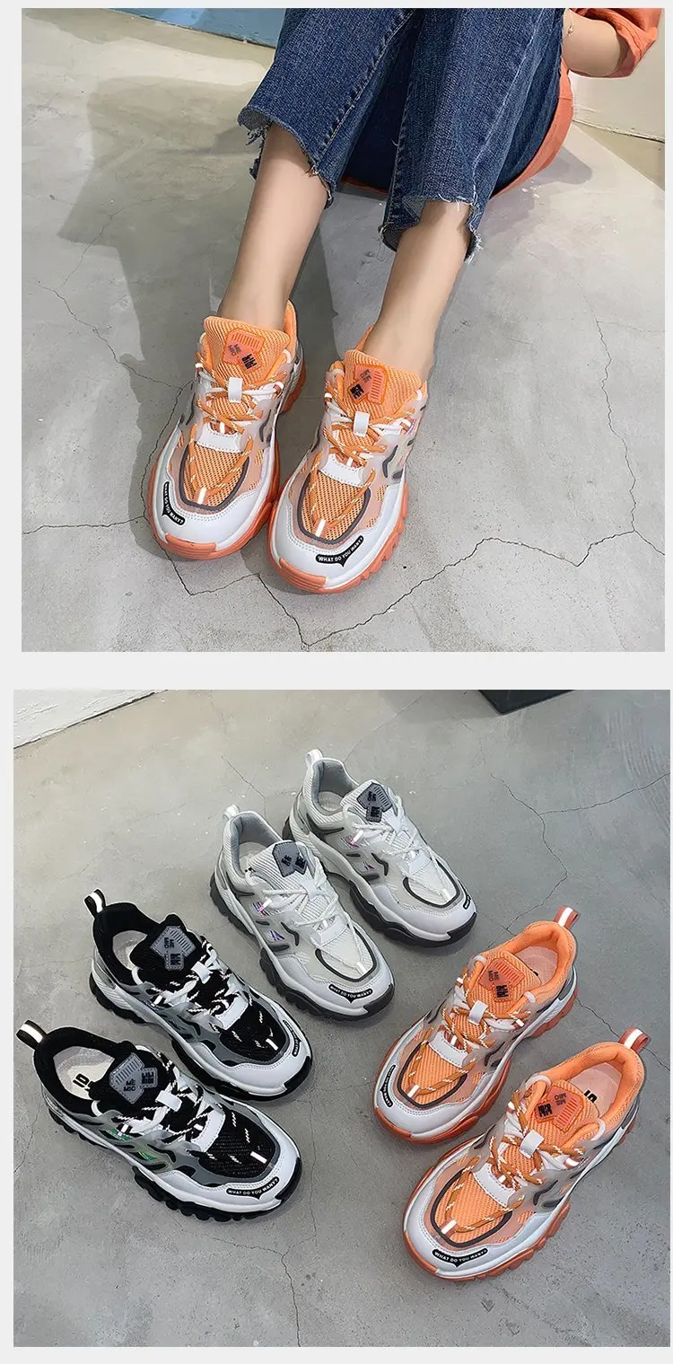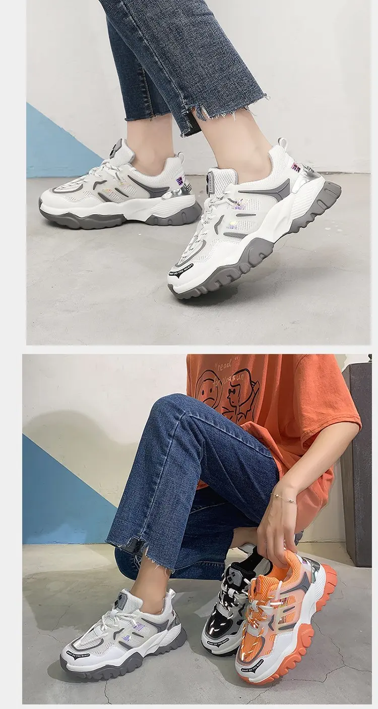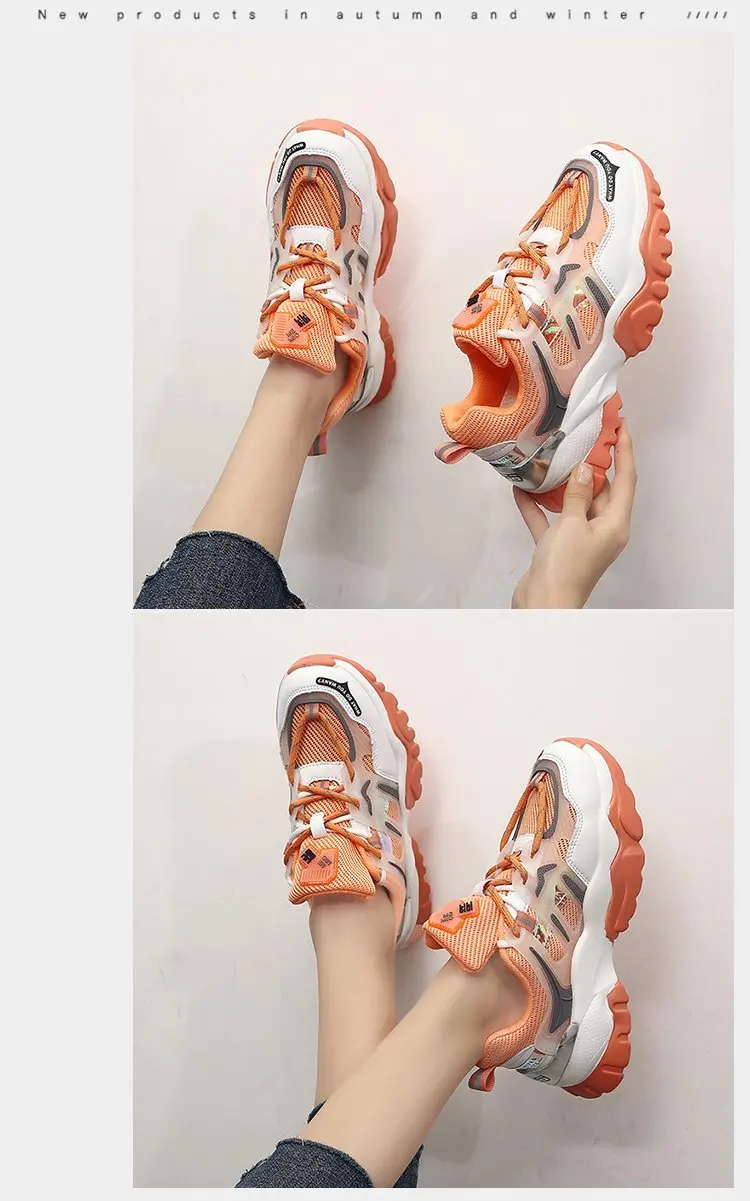 Спортивные кроссовки; Уличная женская обувь; Женские кроссовки из сетчатого материала для девочек; Кроссовки на платформе 5 см со шнуровкой; Женские спортивные кроссовки для бега