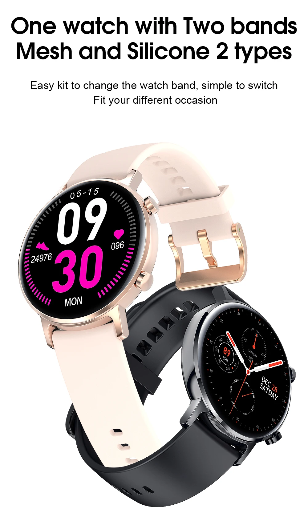 Набор микросхем: скандинавский nrf52840,64 МГц RAM:256KB,ROM:External1MB + 128MB Моделирование продукта: спортивные часы для здоровья Чехол для часов: чехол для часов из сплава, зеркальное стекло с защитой от отпечатков пальцев, пластиковый чехол для задней панели. Ремешок для часов: съедобный силиконовый ремешок для часов Основание для зарядки: Магнитная Зарядка Основной экран: 1,2 дюйма AMOLED круглый экран, разрешение 390*390 Сенсорный экран: Полное касание Версия Bluetooth: Bluetooth 5,1 Вибратор: Поддержка Название приложения: HPlusFit Языки часов: китайский, английский, японский, русский, испанский, французский, итальянский, немецкий, португальский, греческий, голландский, польский, тайский. Язык приложения: китайский, английский, японский, русский, испанский, французский, итальянский, немецкий, португальский, греческий, голландский, польский, тайский, арабский.