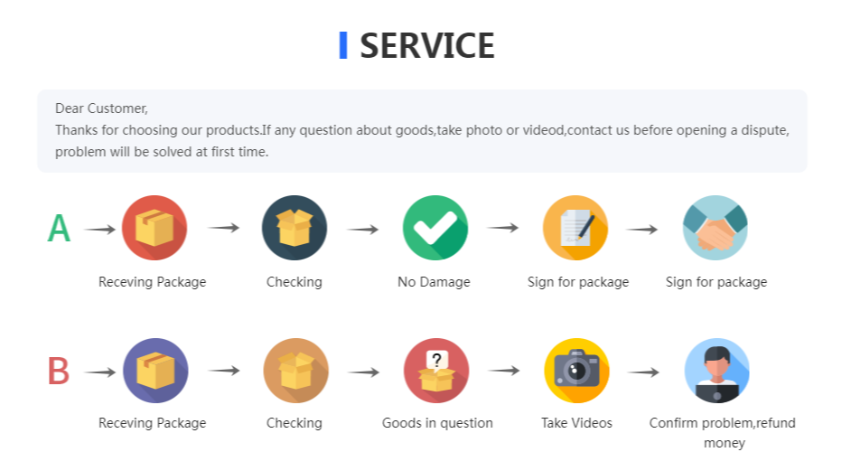 3. Мы искренне просим вас не оставлять негативные отзывы, прежде чем связаться с нами. Ни один продавец не может гарантировать отсутствие проблем, но оценить, как решить проблему.