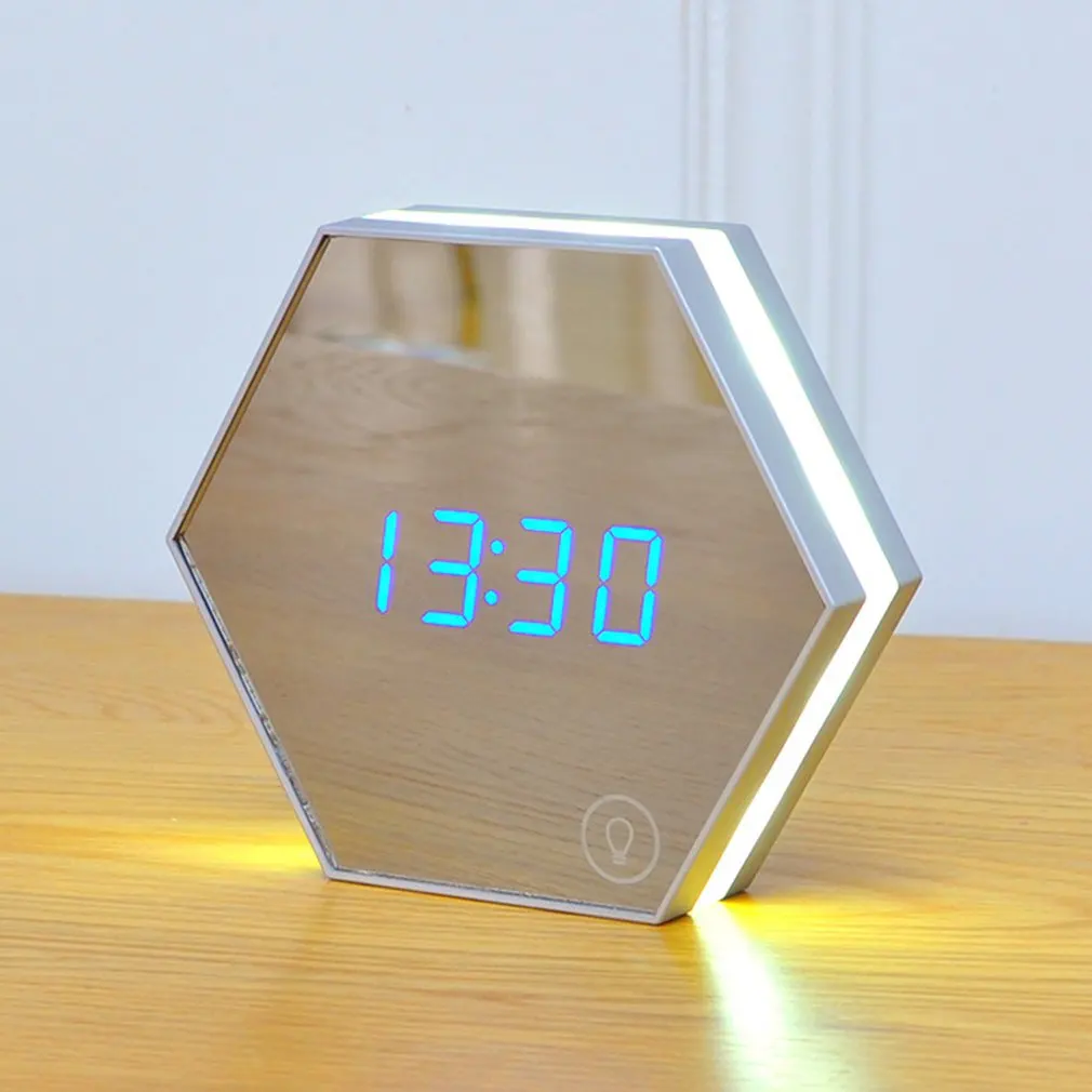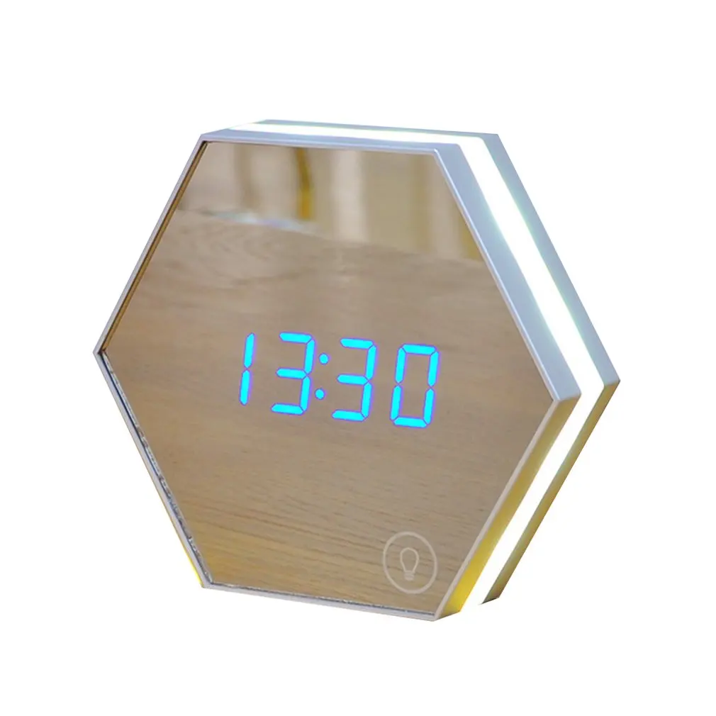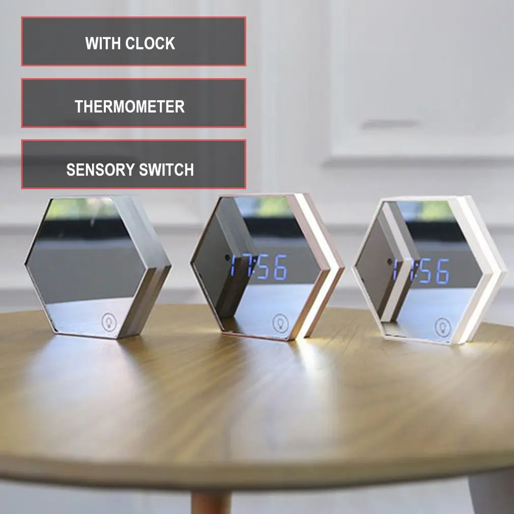 Часы-Будильник: Он может установить не более 3 групп режимов будильника, вы можете установить 3 группы различных будильников за один день. Тихая забота, чтобы обеспечить хороший сон и лучшую рабочую среду, идеальную тумбочку, прикроватный или офисный стол будильник. -Зеркала заднего вида: Многофункциональное плоское зеркало, идеальное отражение, позволяет сделать макияж, такой как подводка для глаз, тушь для ресниц, брови, а также твитрировать нежелательные волоски. Светодиодный Ночной светильник: Умный Ночной светильник, может быть как прикроватный Ночной светильник, сенсорное управление, синие цифры волшебно появятся на зеркальной поверхности, сделают вашу жизнь легкой и удобнойТехнические характеристики: