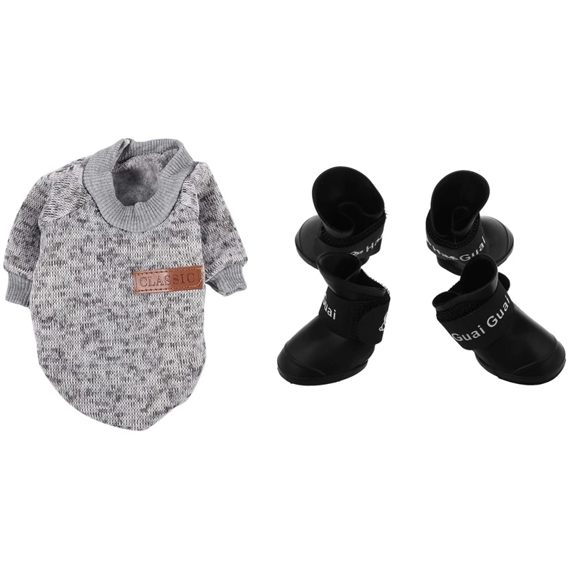 Черные S, ботинки для домашних животных, резиновые водонепроницаемые непромокаемые сапоги для собак и куртка для щенков, одежда для свитера для чихуахуа, йоркширского цвета XS, серого цвета