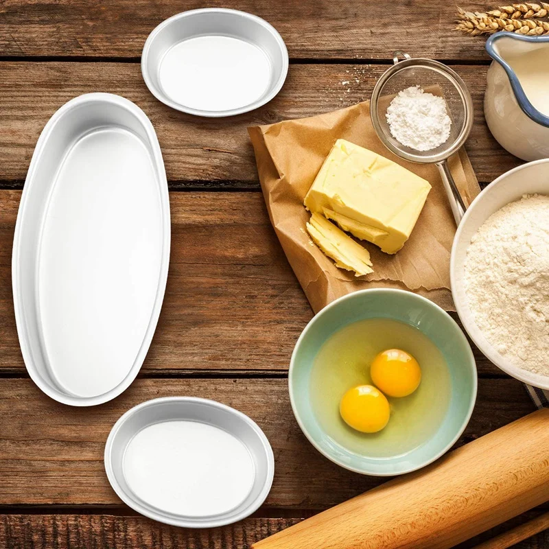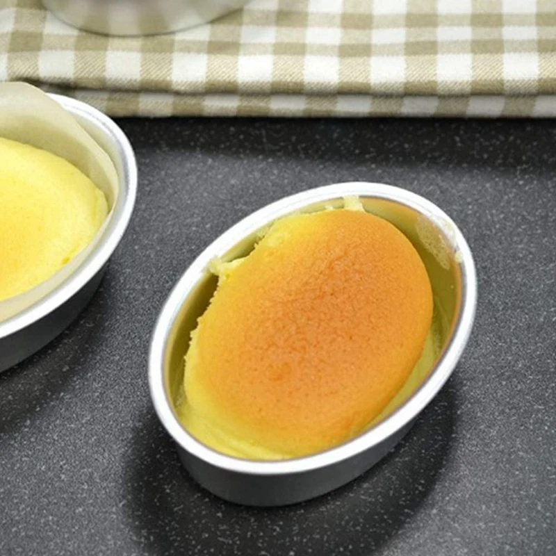 Our oval baking pan is made of aluminum, strong, heat evenly, durable and will keep in shape. Perfect for Japanese cheesecake, bread and meatloaf