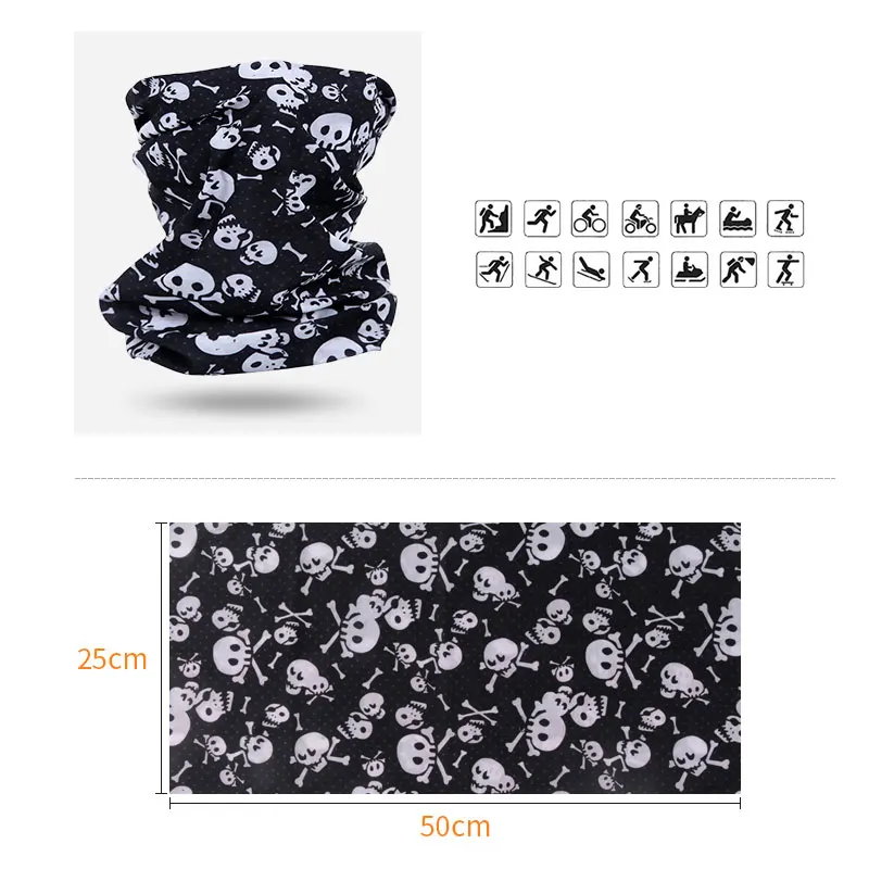 Товар: Спортивная толстовка с капюшоном для верховой езды на открытом воздухе с капюшоном (спортивный шарф) однотонная серия Размеры: 25*50 см Метод печати: термопечать Материал: высококачественное 100% полиэфирное волокно с эластичностью (100% полиэстер из микрофибры) Упаковка: один пакет opp упаковка Цвет: череп