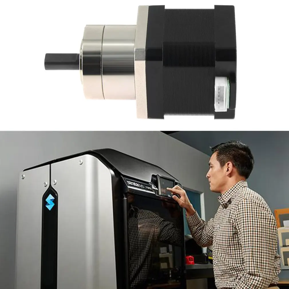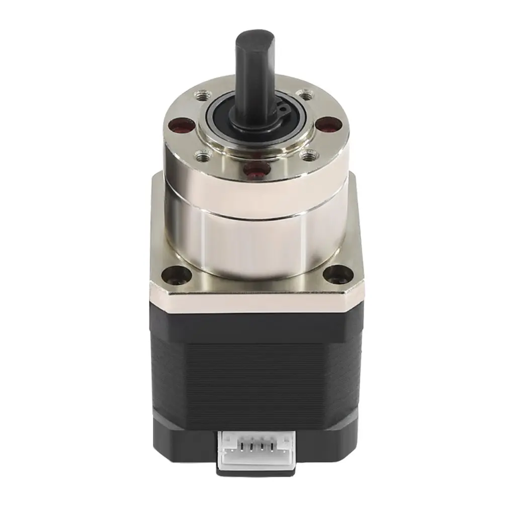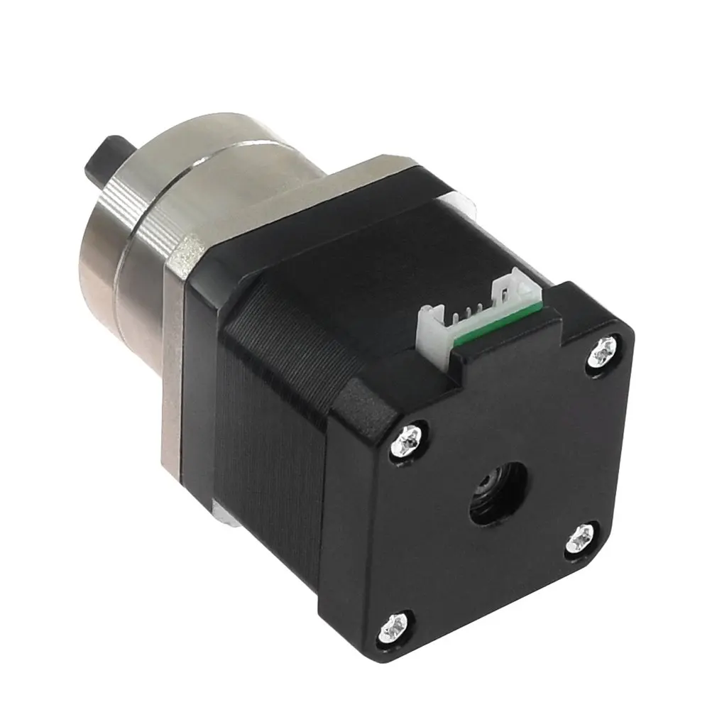 Особенности: 1. Небольшой размер, удобное хранение и размещение. 2. Скорость ровная и не теряет шаги. 3. Это биполярный шаговый двигатель. 4. Скорость вращения стабильна и низкий уровень шума. 5. Изготовлен из высококачественного материала для долговечности. Описание: 1. Стабильные характеристики, высокая надежность. 2. Простая установка и замена. Характеристики: Номер модели: 17HS4401S-PG518 Материал: металл Цвет: черный и серебристый Длина кабеля: 1 м Угол поворота (коробка передач W/O): 1,8 ° Удерживающий крутящий момент: 1,68 нм Номинальный ток/фаза: 1.68A Фазовое сопротивление: 1,65 Ом Рекомендуемое напряжение: 12-24 В Индуктивность: 3,2mh ± 20%(1 кГц) Тип коробки передач: планетарный Передаточное отношение (точное Передаточное отношение): 5 + 2/11 Эффективность: 90% Люфт без нагрузки: <= 1 ° Максимальный допустимый крутящий момент: 2 нм (283oz-in) Допустимый крутящий момент: 4 нм (566oz-in) Максимальная осевая нагрузка вала: 50N Максимальная радиальная нагрузка вала: 100N Посылка включает в себя: 1 шаговый двигатель