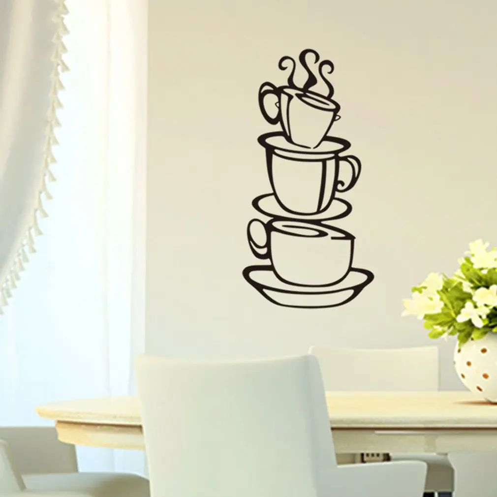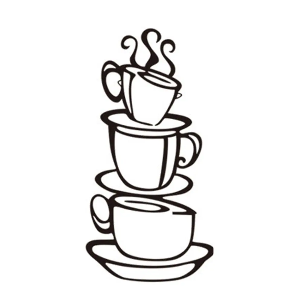1. Приглашаем гостей с теплым и игривым видом, который акцентирует любой дизайн интерьера цветовой гаммы, как нейтральные тона ярких красок и пятен. Дизайн вырезанной формы с силуэтом сложенных кофейных чашек на чайных тарелках с паром, возникающим из пика. Идеально подходит для любого любителя кофе! Простой, но креативный подход к художественному оформлению стен кофе, который идеально подходит для домашней кухни, ресторана, кафе, кафе или закусочной.