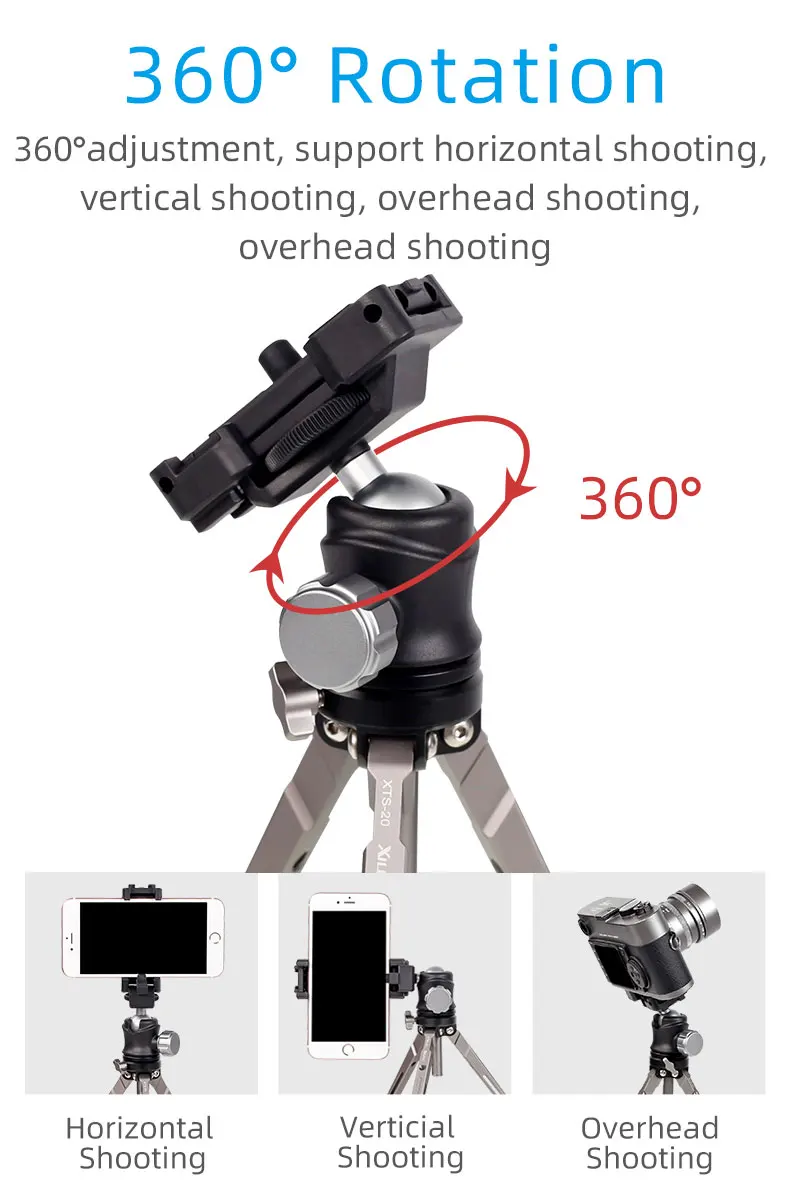 XILETU XTS-20 + BJ-1 Настольный дорожный штатив мини настольный с шаровой головкой 360 ° легкий портативный и удобный для беззеркальной камеры/SLR камеры/спортивной камеры/смартфонов