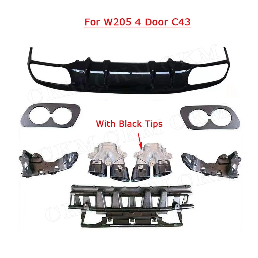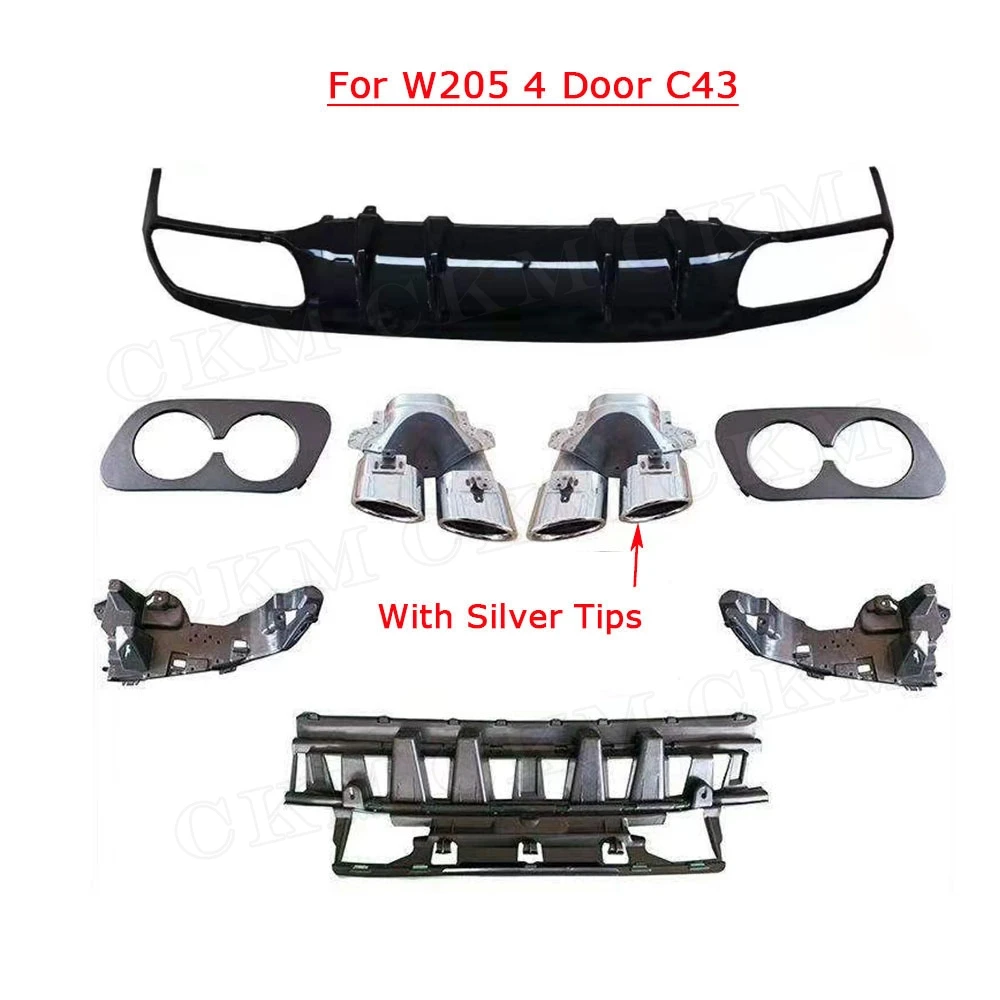 ABS задний диффузор для губ с выхлопными наконечниками для Benz C Class W205 C205 C43 C63 AMG 2015-2020 бампер для автомобиля Стайлинг