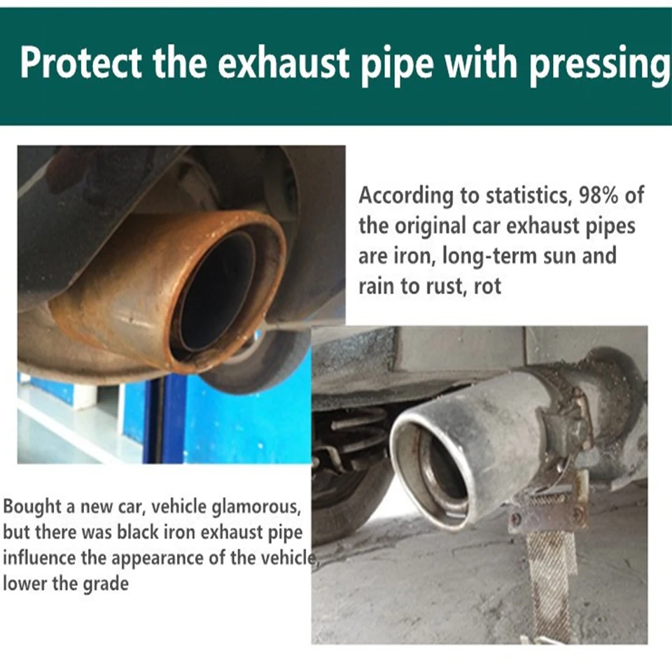 Название продукта: крышка выхлопной трубы автомобиля Материал: нержавеющая сталь Цвет: серебристый/синий/черный/матовый черный/углеродистый Назначение: декоративная защита панели, предотвращение коррозии Инструкция по установке: Очистите поверхность автомобиля, держите ее сухой, легко устанавливается без сверления без повреждений