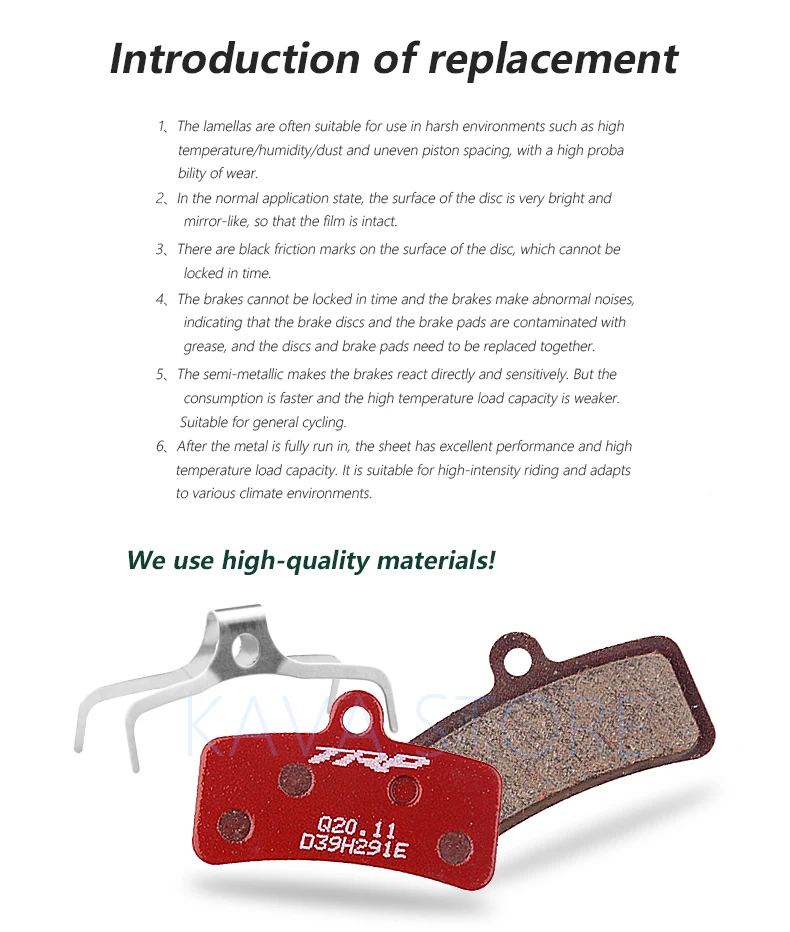 Brand: TRP Model: Q20.11 Name: Four-piston Brake Pads Material: metal sintered composite material Weight: 37g Packing: boxed Applicable product model: HD-M745/HD-M375/HD-E725/G-SPEC DH/G-SPEC TRAIL/G-SPECE-MTB/ZURICH PADS (Also compatible with Shimano's four-piston disc brakes) Features: Four-piston design, larger contact area, greater friction, and more powerful braking force.