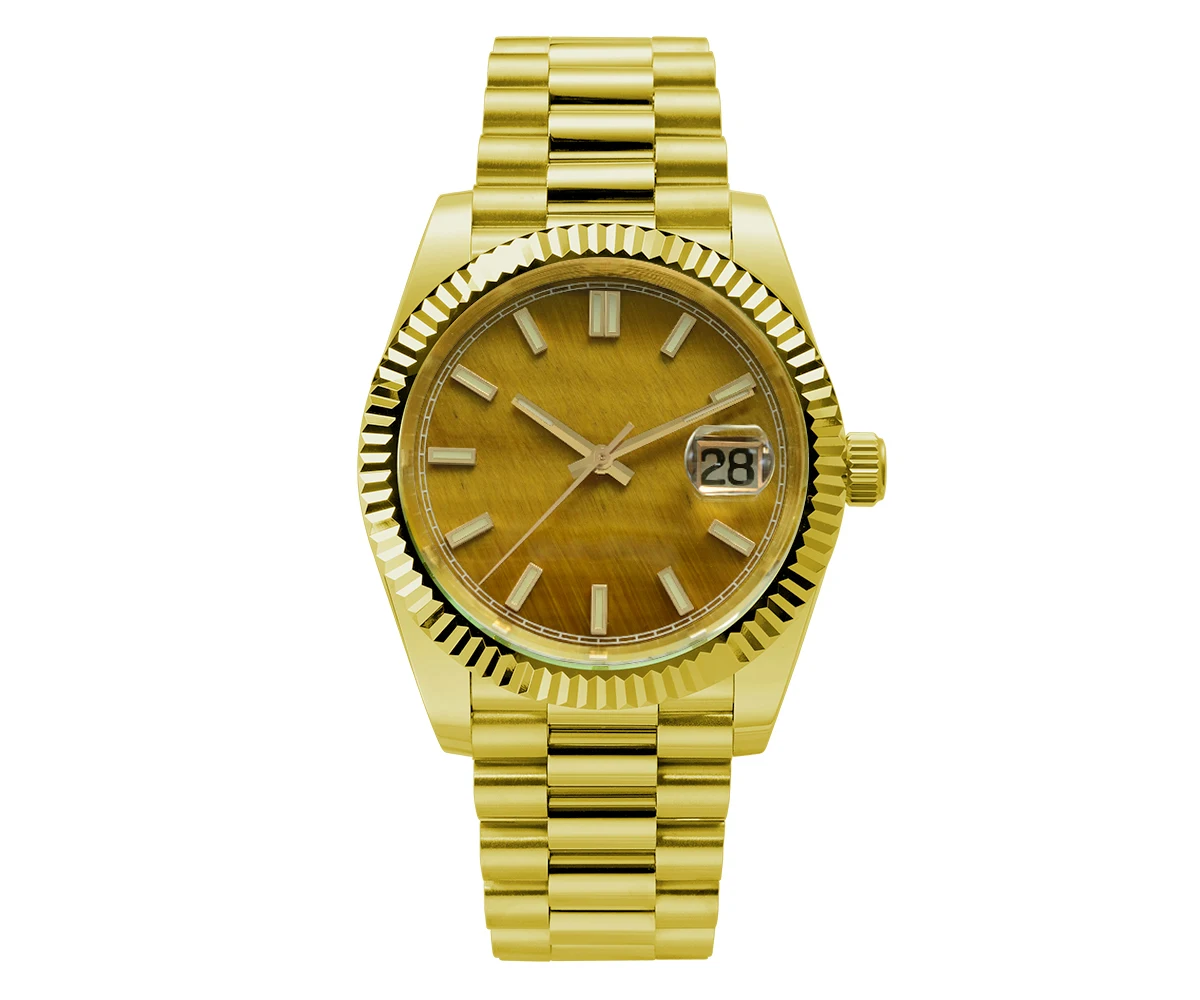 Корпус из розового золота, циферблат с камнем тигровый глаз
