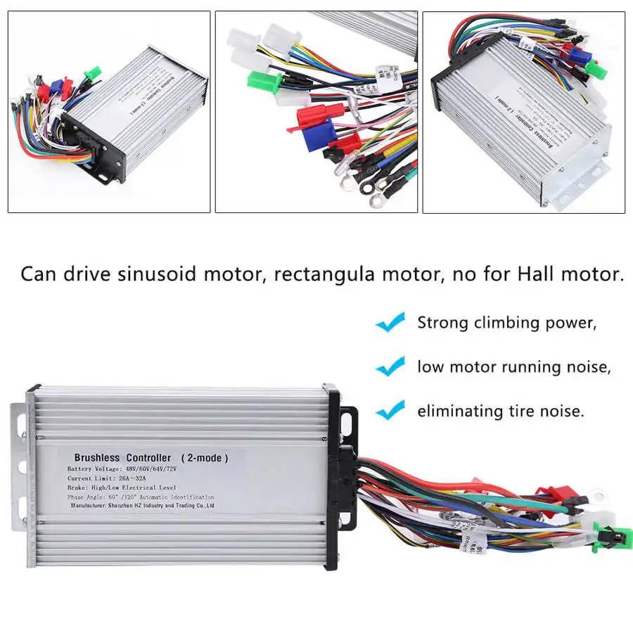 48V 60V 64V 72V 1000-1500W E‑Bike бесщеточный мотор контроллер Электрический велосипед Скутер двухмодельный регулятор скорости E‑Bike запчасти