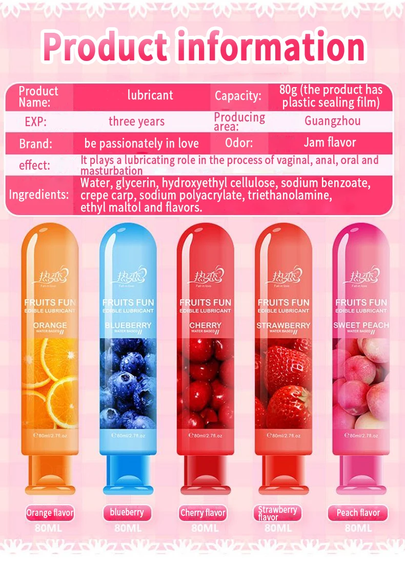 Вкус: апельсин, вишня, клубника, черника, персик Параметры: 80 мл Состав: фруктовый экстракт, ботанический вкус, вода, бутиленгликоль, мальтол, экстракт лимонной травы Применение: секс, оральный секс, анальный секс, массаж и т. д. Посылка включает в себя: 1 x смазочного масла
