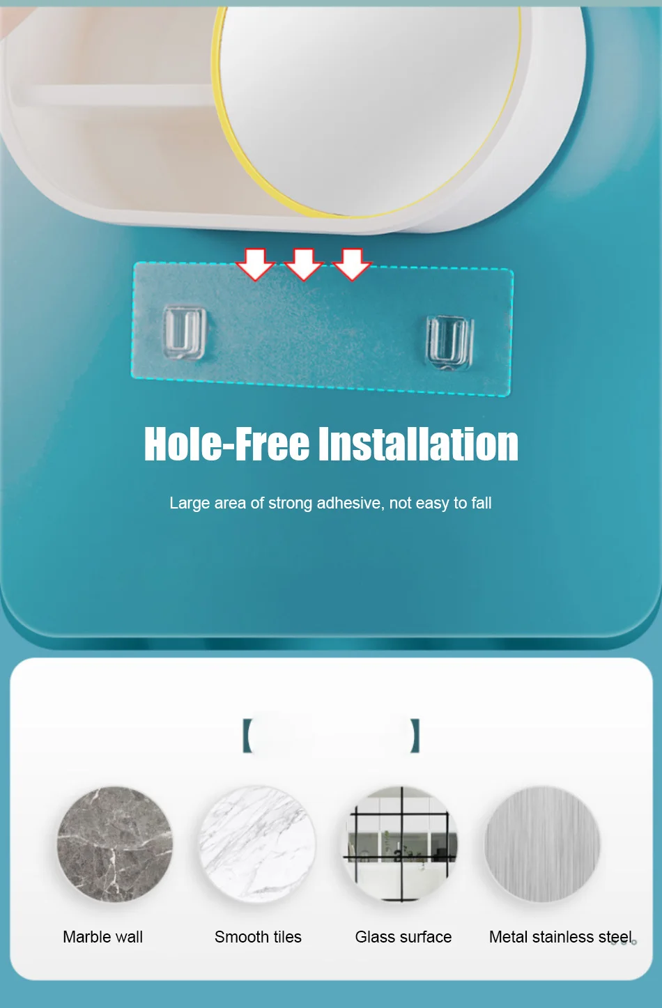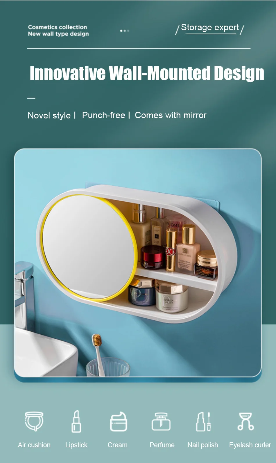 Новый чехол для хранения без дырочек, чехол для макияжа, настенный для ванной, косметика, туалетные принадлежности, зеркало для хранения, туалет, аксессуары для ванной комнаты