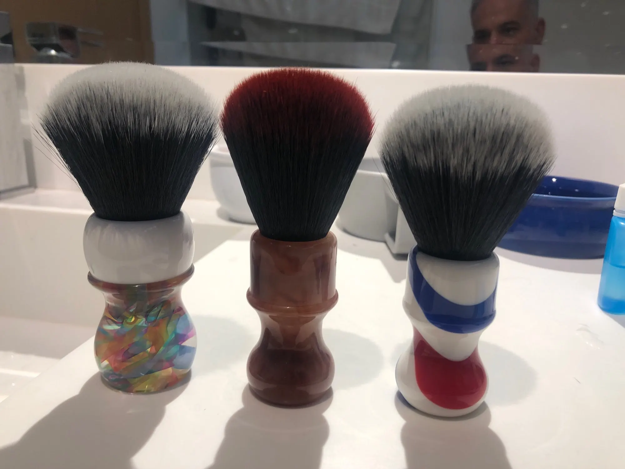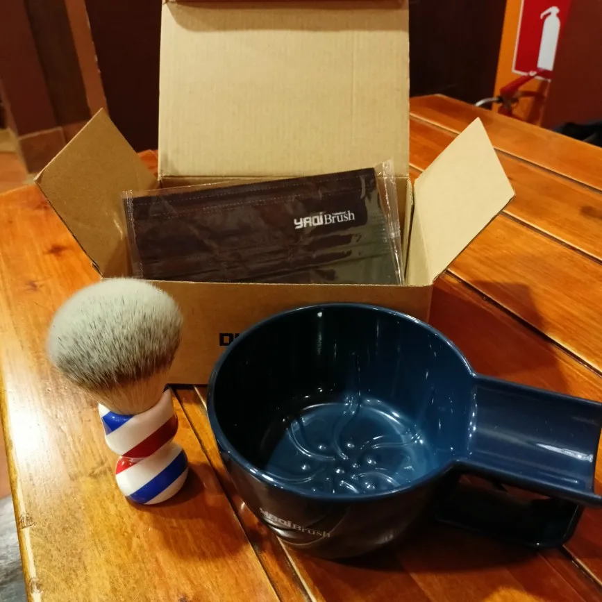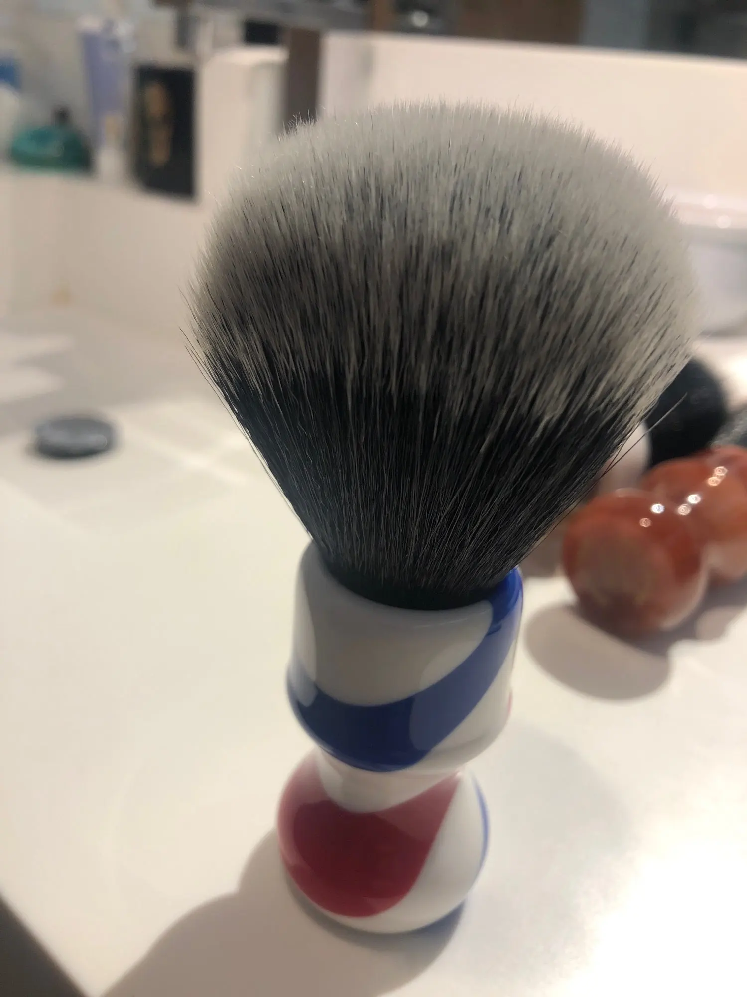 dscosmetic 24mm T4 soft synthetic hair shaving brush barber pole handle by hand made