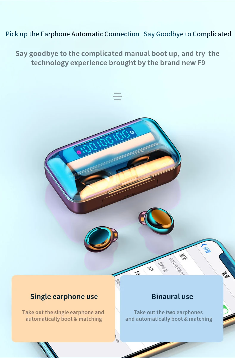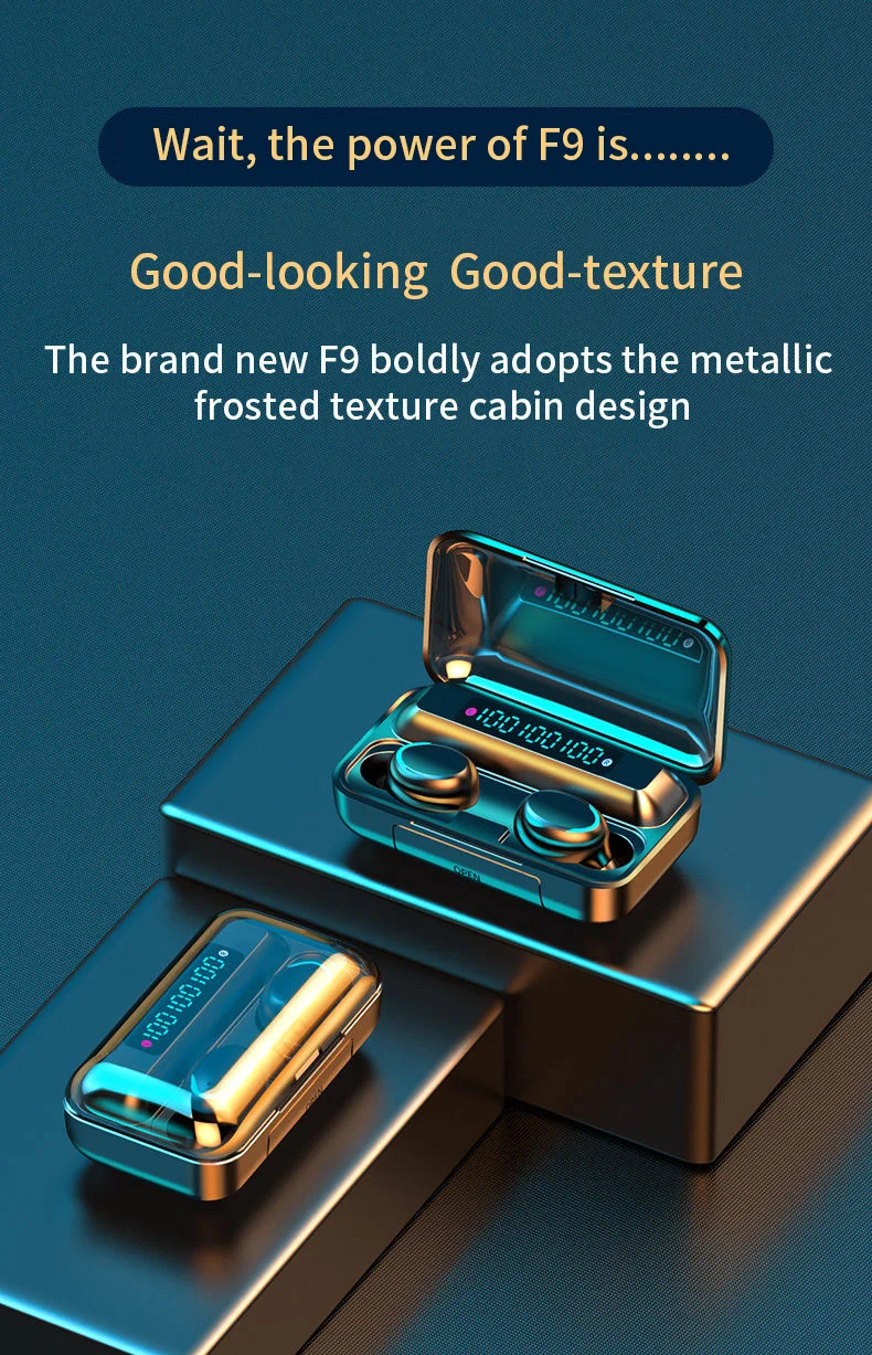 Беспроводные наушники F9 TWS Bluetooth с сенсорным управлением, музыкальные наушники с тремя светодиодными дисплеями, гарнитура IPX7, водонепроницаемая, для бега, спорта