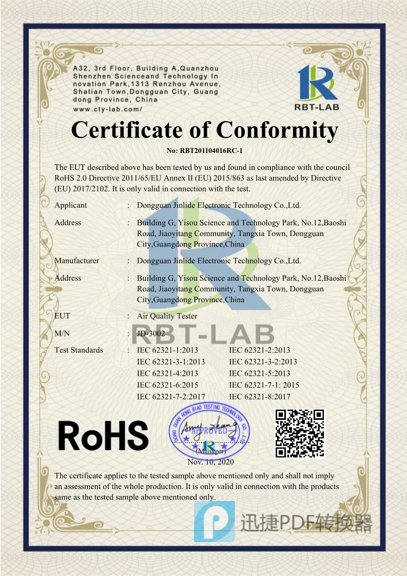 Обнаружение TVOC-диапазон: 0-2,0 мг/м³