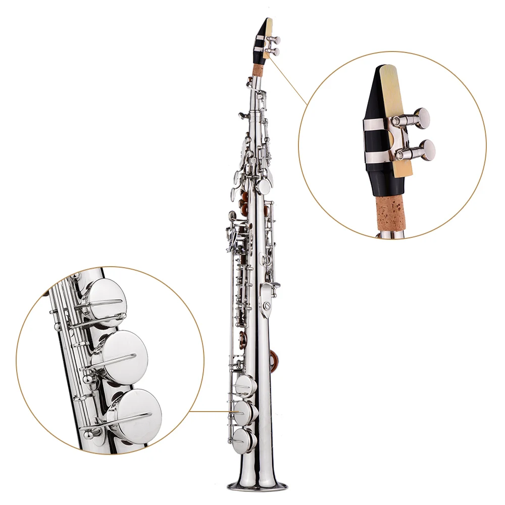 Этот высококачественный Сопрано-саксофон обеспечивает более сильный звук и дает проникающую силу в вашей производительности.