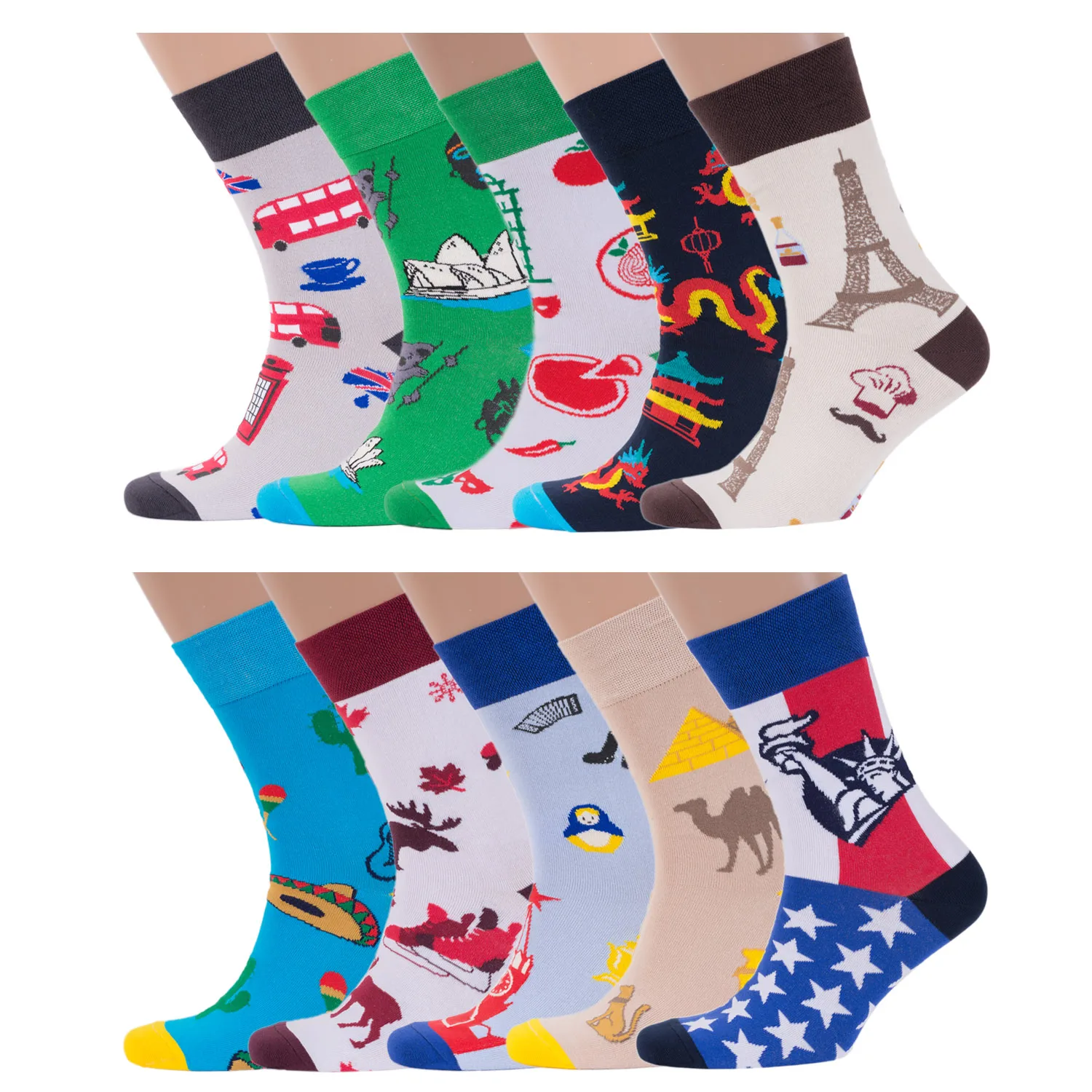 Размер EUРазмер РФРазмер ноги, смS2337-39M2540-41L2742-43XL2944-46XXL3146-48XXXL3348-49Этот набор из 20 пар хлопковых носков MoscowSocksClub настоящая находка для любителей путешествовать! Ведь здесь собрано 10 пар носков из самых известных и интересных стран мира - Италия, Австралия, Великобритания, Китай, Франция, Мексика, Канада, Россия, Египет, Америка. 10 других пар - однотонные черные носки, которые отлично будут сочетаться с классическим костюмом и подойдут к рабочему дресс-коду. Носки удобные, эластичные и очень качественные. Не теряют яркость и форму после многочисленных стирок. Компактно упакованы в красивую подарочный кейс с ручкой.