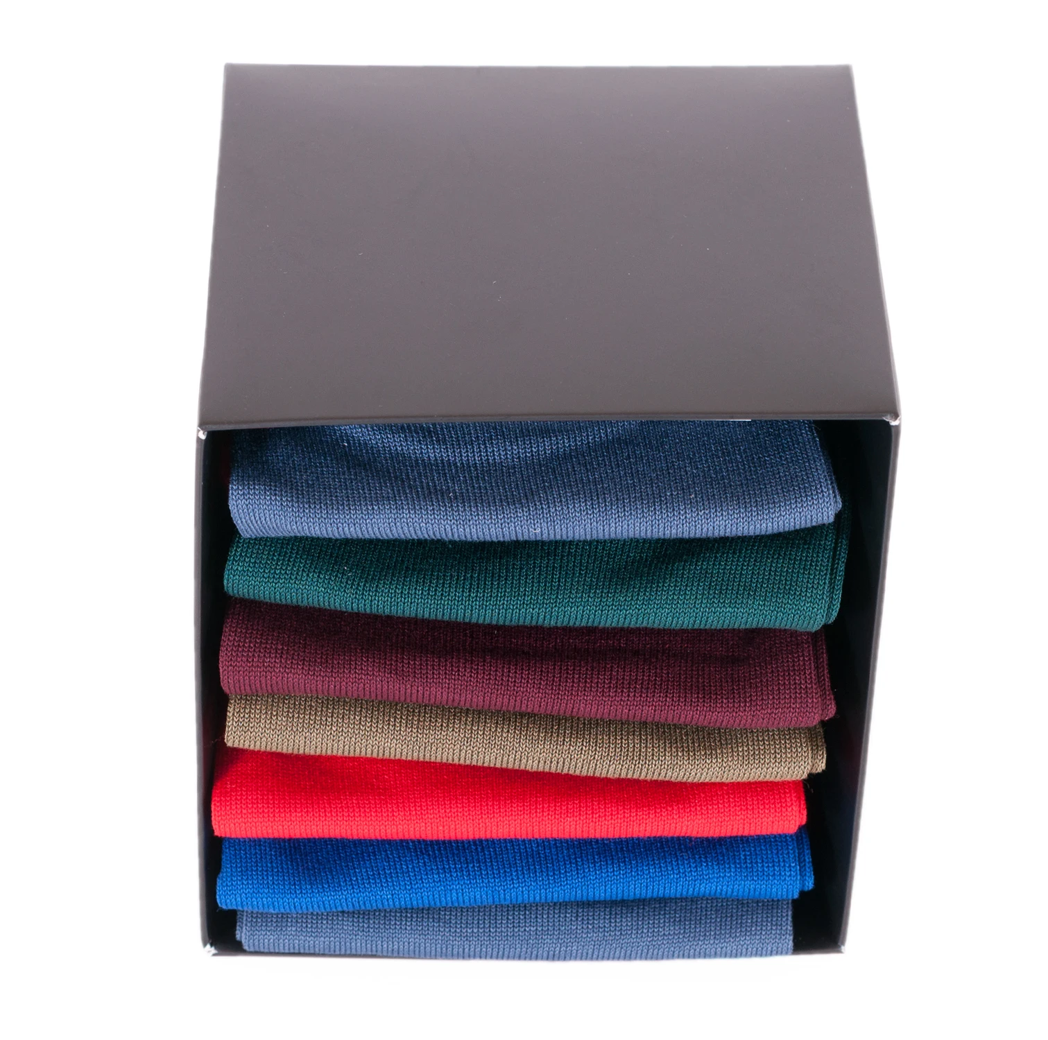 Набор из семи пар носков Sergio di Calze упакован в картонную коробку-кубик. В комплект входят однотонные укороченные носки разных цветов. Модель сделана из мерсеризованного хлопка и полиамида.