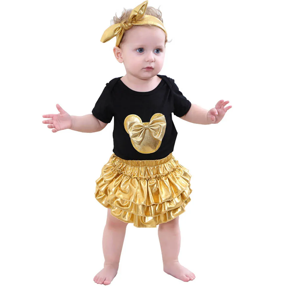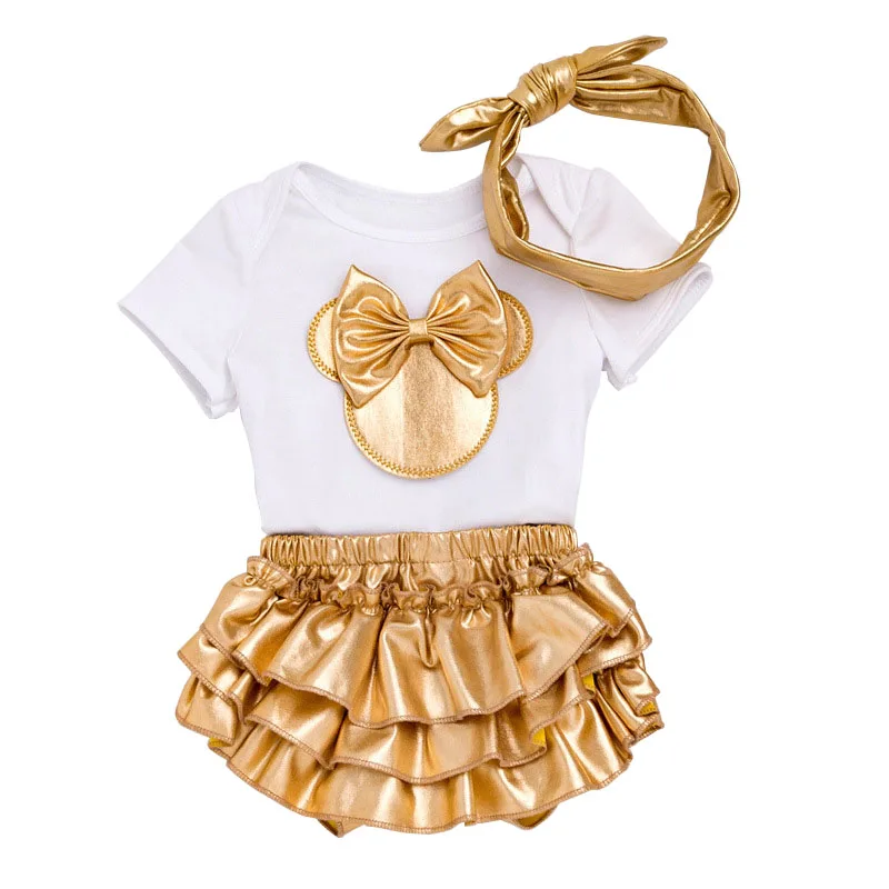 Одежда для новорожденных девочек с золотой мышкой; Костюм; Боди; Штаны; Шорты; Повязка на голову; 4 шт. Особенности: Материал: хлопок, полиэстер Посылка: 1 комбинезон, 1 шорты, 1 Золотая обувь, 1 повязка на голову Талия брюк: средняя талия Размеры: 59/66/73/80, подходит для детей от 0 до 24 месяцев, Одежда для новорожденных Стиль: одежда для маленьких девочек на день рождения и Рождество